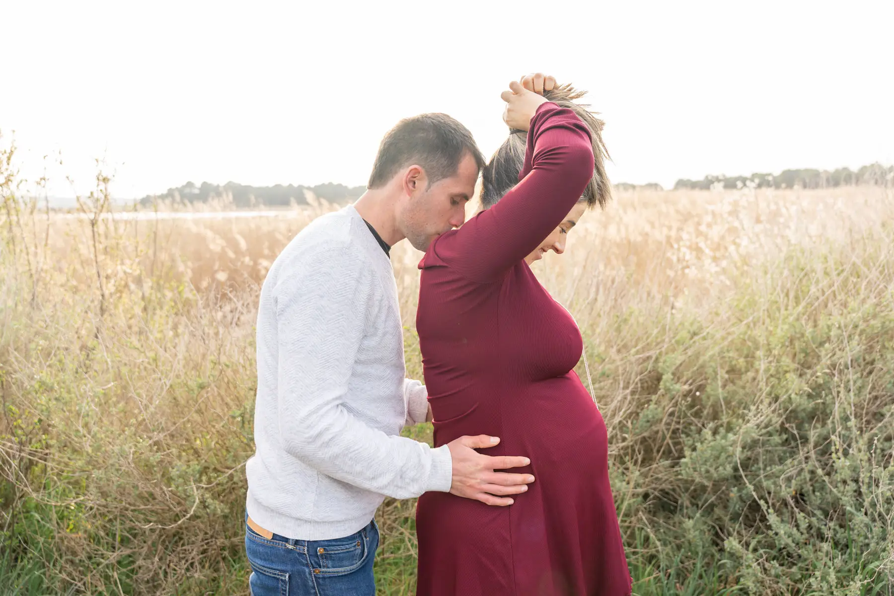 Lo ideal es realizar la sesión entre la semana 28 y la 34 de embarazo, cuando la tripita ya se ve bonita pero tú todavía te encuentras con energía. Las sesiones pueden ser en exteriores (en la naturaleza, al atardecer…) o en tu casa si prefieres un ambiente más íntimo y relajado. También podemos combinar ambas opciones para conseguir un reportaje más completo.